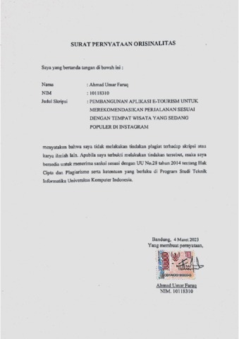 20.UNIKOM_AHMAD UMAR FARUQ_SURAT PERNYATAAN ORISINALITAS.pdf - Published Version