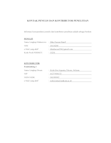 18.UNIKOM_DIKA FAUZAN HANIF_LEMBAR KONTAK PENULIS _ KONTRIBUTOR.pdf - Published Version