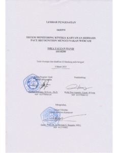 Hanif, Dika Fauzan (2023) Sistem Monitoring Kinerja Karyawan Berbasis Face Recognition Menggunakan Webcam. Other thesis, Universitas Komputer Indonesia.