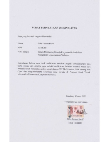 20.UNIKOM_DIKA FAUZAN HANIF_ SURAT PERNYATAAN ORISINALITAS.pdf - Published Version