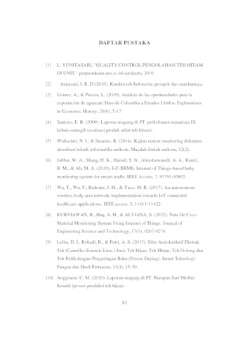 Indonesia saat ini adalah produsen teh terbesar ketujuh di dunia. Perkebunan teh merupakan salah satu aspek dari sektor pertanian yang menguntungkan di Indonesia. Kebutuhan dunia akan komoditas perkebunan sangat besar khususnya teh. Secara tradisional teh dibagi menjadi tiga jenis yaitu teh hijau, teh oolong, dan teh hitam. Pengolahan pada daun teh hijau melalui beberapa tahap yaitu Pelayuan (Rotary Panner), Pendinginan (Rotary Colling), Penggulungan (Roller), Pengeringan Pertama (ECP), Pengeringan Kedua (Ball Tea) dan Pengepakan/Sortasi. Penelitian ini akan membahas tentang proses penggulungan teh hijau. Penggulungan teh hijau merupakan tahap setelah pendinginan. Proses penggulungan pucuk dan pemerasan cairan sel, pembentukan kenampakan membentuk fisik teh menggulung menggunakan mesin Open Top Roller (OTR) double action, pengguluangan pucuk halus dengan conveyor diatasnya yang membagi masuknya teh hijau kedalam mesin penggulung teh, berkapasitas 250kg pertabung dengan waktu kapasitas penggulungan pucuk halus 30-40 menit. Tujuan dari penelitian ini adalah membangun Sistem Monitoring dan Otomasi Alat Penggulungan Teh Hijau Berbasis Internet of Things (IoT. Data yang dihasilkan dari sistem ini merupakan data keluaran diantaranya otomasi monitoring perpindahan proses teh hijau menuju tabung satu dan tabung dua, otomasi monitoring mesin penggulungan saat tabung terisi penuh. Untuk pembacaan data, diopreasikan melalui microcontroller Atmega 328p yang terdapat pada Arduino R3 yang dihubungkan dengan sensor HCSR04 untuk membaca jarak ketinggian tabung, Modul Relay 4 Channel untuk memutuskan dan menyambungkan arus kepada conveyor, tabung 1 dan tabung 2, Servo SG90 untuk memindahkan jalur conveyor pada tabung kosong. Seluruh data yang masuk akan ditampilkan melalui website sebagai media operasi data dan akses database. Data dapat diunduh dan juga dianalisis sesuai kebutuhan. Metode yang dipakai untuk monitoring penggulungan teh hijau dengan menggunakan Internet of Things (IoT)
