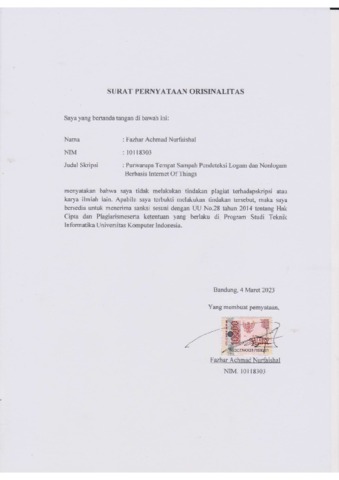 Nurfaishal, Fazhar Achmad (2023) Purwarupa Tempat Sampah Pendeteksi Logam Dan Nonlogam Berbasis Internet Of Things. Other thesis, Universitas Komputer Indonesia.
