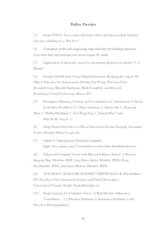 | Uncontrolled Keywords: | Depth Perception, Deep Learning, OpenNi, sensor Inframerah |