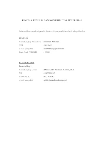 18.UNIKOM_MICHAEL ANDREAS_LEMBAR KONTAK PENULIS _ KONTRIBUTOR.pdf - Published Version