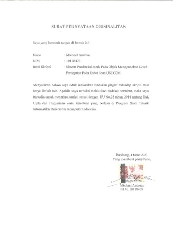 20.UNIKOM_MICHAEL ANDREAS_SURAT PERNYATAAN ORISINALITAS.pdf - Published Version