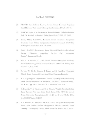 | Uncontrolled Keywords: | Sistem Informasi, Manajemen Inventori, PDCA, Single Exponential Smoothing, Mean Squared Error |