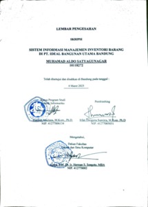Satyagunagar, Muhamad Aldo (2023) Sistem Informasi Manajemen Inventori Barang Di Pt. Ideal Bangunan Utama Bandung. Other thesis, Universitas Komputer Indonesia.
