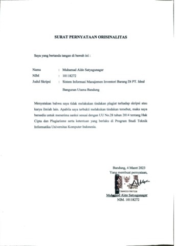 20.UNIKOM_Muhamad Aldo Satyagunagar_surat pernyataan orisinalitas.pdf - Published Version
