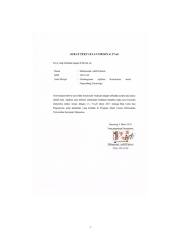 UNIKOM_MUHAMMAD LUTHFI FAHREZI_SURAT PERNYATAAN ORISINALITAS.pdf - Published Version
