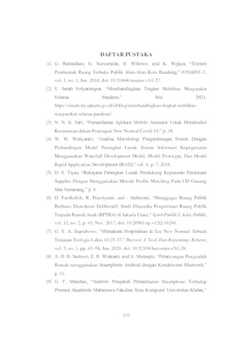 Ruang publik merupakan tempat dimana suatu masyarakat dapat berkumpul untuk meraih tujuan tertentu dan menjadi suatu kebutuhan warga kota Bandung dalam beraktivitas terutama pada saat menghabiskan waktu liburnya. Tetapi semua aktivitas warga di ruang publik menjadi terganggu semenjak adanya pandemi Covid-19. Pandemi yang telah berlangsung selama 2 tahun ini memberikan dampak pada banyak sektor, salah satunya adalah bagaimana aktivitas masyarakat di ruang publik. Sehingga masyarakat harus bisa berkompromi, hidup berdampingan dan berdamai dengan covid-19 agar tetap produktif dimana kondisi tersebut disebut dengan new normal. Sebagai bentuk penerapan new normal, salah satunya adalah pemberlakuan social distancing. Namun saat ini muncul masalah yaitu masyarakat sering tidak mengetahui bagaimana kondisi keramaian dari ruang publik di kota Bandung. Adapun sumber informasi yang biasa masyarakat gunakan untuk mengecek kondisi keramaian ruang publik adalah dengan menggunakan media sosial seperti Instagram. Pembangunan aplikasi untuk mengatasi hal tersebut menggunakan metode perangkat lunak prototyping. Aplikasi berbasis android yang dapat membantu masyarakat mengatasi hal tersebut. Dan hasilnya akan dituangkan dalam Pembangunan Aplikasi Pendeteksi Keramaian di Ruang Publik Dalam Penerapan New Normal di Kota Bandung. Aplikasi ini akan memanfaatkan teknologi gps dan geofencing sebagai parameter pengguna ketika mengunjungi ruang publik dan sebagai pendeteksian tingkat keraiamaiannya.