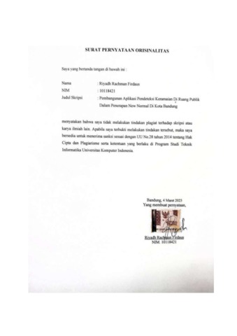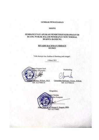 Firdaus, Riyadh Rachman (2023) Pembangunan Aplikasi Pendeteksi Keramaian Di Ruang Publik Dalam Penerapan New Normal Di Kota Bandung. Other thesis, Universitas Komputer Indonesia.