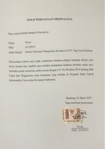 Yeyen, Yeyen (2023) Sistem Informasi Manajemen Persediaan Di Pt. Tiga Nova Sentosa. Other thesis, Universitas Komputer Indonesia.