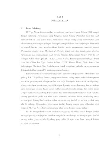 Maka sistem yang dibangun dengan judul "Sistem Informasi Manajemen Persediaan di PT. Tiga Nova Sentosa. " bertujuan untuk dapat membantu perusahaan dalam mengelola ketersediaan produk di gudang agar dapat meminimalisir kerugian selama PO dan mengelola tata letak penempatan barang di gudang. Sehingga memudahkan kepala divisi administrasi dan gudang untuk menentukan jumlah permintaan produk agar lebih mudah dalam memantau jumlah produk serat optik pada barang yang masuk dan keluar di gudang, serta memudahkan dalam menentukan tempat barang yang tepat agar tidak menghambat proses pencarian barang berulang kali.