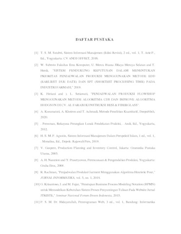 | Uncontrolled Keywords: | Sistem Informasi Manajemen, Produksi, Penjadwalan, Hodgson |