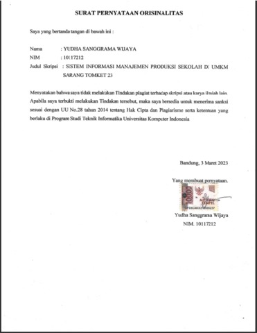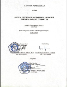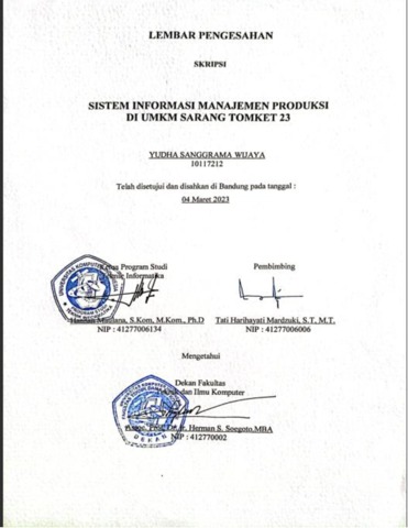 Wijaya, Yudha Sanggrama (2023) Sistem Informasi Manajemen Produksi Di Umkm Sarang Tomket 23. Other thesis, Universitas Komputer Indonesia.