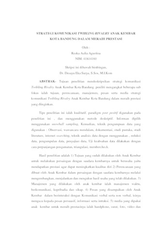 Hasil penelitian adalah 1) Tujuan yang dilakukan oleh Anak Kembar dalam melakukan persaingan dengan saudara kembarnya untuk mendapatkan prestasi yaitu mendapatkan prestasi yaitu meningkatkan kualitas diri 2) Perencanaan yang dibuat oleh Anak Kembar dalam persaingan dengan saudara kembarnya melalui mengembangkan, menjalankan dan mengukur hasil usaha yang telah dilakukan. 3) Manajemen yang dilakukan oleh anak kembar ialah manajemen waktu, berkomunikasi, kepribadia dan sikap. 4) Pesan yang disampaikan oleh Anak Kembar melakukan Komunikasi verbal dan non verbal yang isinya mengacu pada pesan persuasif, informasi dan intruksi. 5) media yang digunakan anak kembar untuk meraih prestasinya ialah handphone, surat, foto, video dan bagi anak kembar itu media yang efektif. 6) Strategi komunikasi Twibling Rivalry Anak kembar memiliki tujuan yang positif, Perencanaan yang baik, manajemen yang direncanakan, pesan yang disampaikan untuk menumbhkan persaingan positif antara anak kembar, media yang digunakan efektif dalam membantu anak kembar dalam meraih prestasinya.Saran penelitian adalah 1) Agar tidak terjadi persaingan yang menyebabkan pertengkaran Anak Kembar sebaiknya lebih terbuka dengan saudara kembarnya mengenai perasaan. 2) Sebaiknya, Mengatur manajemen waktu yang baik merupakan salah satu usaha yang baik untuk dilakukan agar bisa meraih prestasi yang diinginkan.