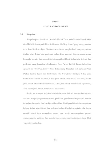 Judul penelitian ini adalah "Analisis Tindak Tutur dalam Tuturan Peter Parker dan Michelle Jones dalam Film Spiderman: "No Way Home". Penelitian ini mengkaji tipe tindak tutur ilokusi dan perlokusi dalam tuturan karakter Peter Parker dan Michelle Jones (MJ) dalam film Spiderman: No Way Home. Tujuan penelitian ini adalah untuk menggambarkan jenis tindak tutur ilokusi dan perlokusi dalam tuturan Peter Parker dan Michelle Jones MJ dalam film tersebut. Objek yang dianalisis dalam penelitian ini adalah dialog antara Peter Parker dan MJ dalam film Spiderman: "No Way Home". Penelitian ini menggunakan teori yang dikembangkan oleh Searle (1979) untuk menganalisis tipe tindak tutur ilokusi dan perlokusi. Metode yang digunakan dalam penelitian ini adalah analisis kualitatif yang melibatkan empat tahap: (1) identifikasi tindak tutur, (2) klasifikasi tindak tutur, (3) analisis konteks, dan (4) penarikan kesimpulan berdasarkan hasil analisis. Hasil penelitian menunjukkan bahwa terdapat 28 data tipe ilokusi dan perlokusi dalam tuturan karakter Peter Parker dan Michelle Jones (MJ) dalam film Spiderman: "No Way Home". Dari 28 data tersebut, terdapat 28 tuturan lokusi. Dalam 28 data tuturan lokusi, terdapat 5 tipe tindak tutur ilokusi, yaitu 4 data tipe tindak tutur ilokusi assertive, 9 data tipe tindak tutur directive, 6 data tipe tindak tutur commisive, 7 data tipe tindak tutur expressive, dan 2 data tipe tindak tutur declarative. Hasil penelitian menunjukkan bahwa tipe tindak tutur directive merupakan yang paling sering digunakan karena banyaknya perintah yang diberikan kepada Peter Parker dan MJ dalam film Spiderman: "No Way Home".