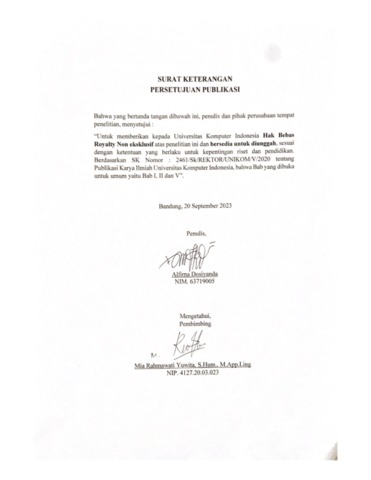 UNIKOM_Alfirna Dosiyanda_Surat Keterangan Persetujuan Publikasi.pdf - Published Version