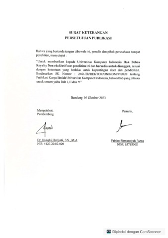 UNIKOM_Fabian Firmansyah Faran_Surat Keterangan Persetujuan Publikasi.pdf - Published Version