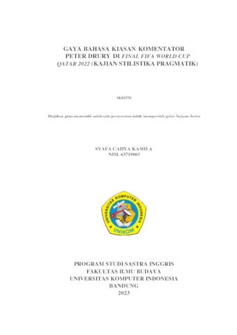 Kamila, Syafa Cahya (2023) Gaya Bahasa Kiasan Komentator Peter Drury Di Final Fifa World Cup Qatar 2022 (Kajian Stilistika Pragmatik). Other thesis, Universitas Komputer Indonesia.