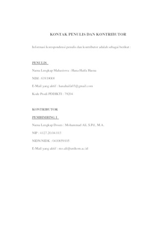 UNIKOM_Hana Haifa Hasna_Kontak Penulis dan Kontributor.pdf - Published Version