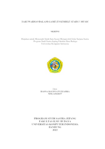 Raudyatuzzahra, Hasna (2023) Yakuwarigo Dalam Game Ensemble Stars!! Music. Other thesis, Universitas Komputer Indonesia.
