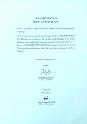 UNIKOM_Hasna Raudyatuzzahra_surat keterangan persetujuan publikasi.pdf - Published Version