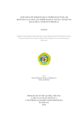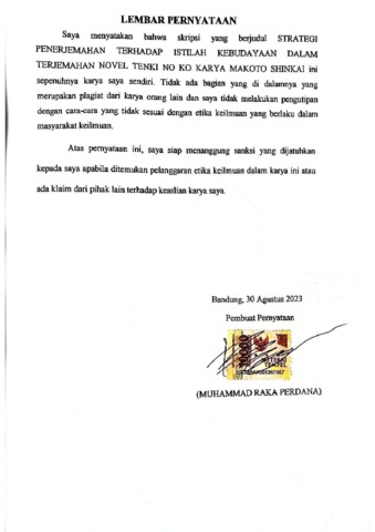 Perdana, Muhammad Raka (2023) Strategi Penerjemahan Terhadap Istilah Kebudayaan Dalam Terjemahan Novel Tenki No Ko Karya Makoto Shinkai. Other thesis, Universitas Komputer Indonesia.