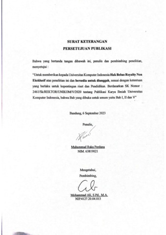 UNIKOM_Muhammad Raka Perdana_Surat Keterangan Persetujuan Publikasi.pdf - Published Version