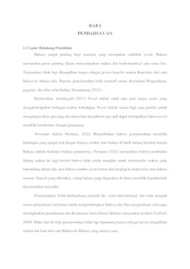 Tujuan dari penelitian ini adalah untuk mendeskripsikan pergeseran penerjemahan akibat perbedaan sudut pandang budaya pada terjemahan novel tenki no ko yang meliputi sudut pandang budaya secara ekologi, material, sosial kultur, sosial budaya, dan gestur dan adat istiadat. Penelitian ini dilatarbelakangi kurangnya kesepadanan penerjemahan dari Kalimat atau kata bahasa Jepang ke bahasa indonesia dari sudut pandang budaya masing-masing bahasa. Metode yang digunakan adalah deskriptif komparatif dengan pendekatan Kualitatif. Sumber data dari penelitian ini adalah Novel terbitan bahasa jepang berjudul Tenki no ko yang terbit pada tahun 2019, dan terjemahan nya berjudul wheatering with you yang terbit di indonesia pada tahun 2021. Peneliti menemukan 259 data dalam sumber data pergeseran unsur sosial budaya, dari 259 kata yang dianalisis, pada pergeseran unsur budaya Ekologi ditemukan 15 data (6%), pada pergeseran unsur budaya Material Kultur ditemukan 45 data (18%), pada pergeseran unsur budaya Sosial Kultur ditemukan 101 data (39%), pada pergeseran unsur budaya Sosial Organitation ditemukan 12 data (5%), kemudian pada pergeseran unsur budaya Gestur dan adat istiadat ditemukan 86 data (33%). Novel ini dipilih berdasarkan kentalnya unsur budaya dan kehudupan yang tidak jauh berbeda dengan realitas kehidupan di Jepang. Hasil Penelitian ini diharapkan dapat berkontribusi untuk mempelajari bahasa Jepang, khususnya dalam kaitannya dengan pemahaman dalam Strategi penerjemahan dari sudut pandang budaya.