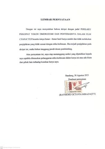 MiraZaqty, Raymond Octavia (2023) Perilaku Psikopat Tokoh Morozumi Dan Penyebabnya Dalam Film Character. Other thesis, Universitas Komputer Indonesia.