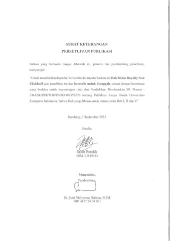 21_UNIKOM_Rendy Renaldy_Skripsi_Surat Keterangan Persetujuan Publikasi.pdf - Published Version