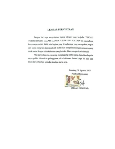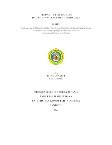 Gunarvi, Rivan (2023) Tindak Tutur Ilokusi Dalam Manga Juujika No Rokunin. Other thesis, Universitas Komputer Indonesia.