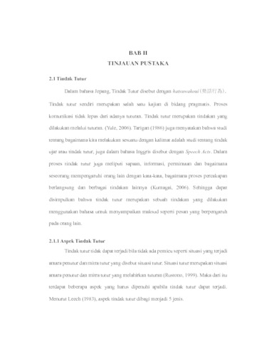 | Uncontrolled Keywords: | Tindak Tutur Ilokusi, Jenis, Bahasa Jepang, Manga, Juujika no Rokunin |