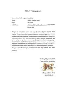 Dewi, Rizky Andriana (2023) Identitas Bali Pada Logo Perusahaan Oleh-Oleh Di Provinsi Bali. Masters thesis, Universitas Komputer Indonesia.