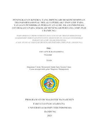 Ramadhina, Fifi Ainur (2023) Peningkatan Kinerja Yang Dipengaruhi Kepemimpinan Transformasional Melalui Perilaku Inovatif Pada Yayasan Pendidikan Persatuan Guru Islam Indonesia (Studi Kasus Pada Sekolah Menengah Pertama (Smp) Pgii 1 Bandung). Masters thesis, Universitas Komputer Indonesia.