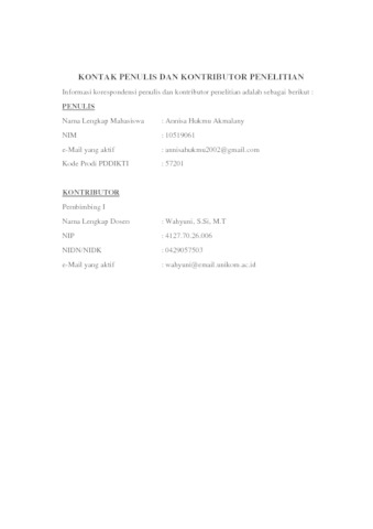 UNIKOM_Annisa Hukmu Akmalany_Kontak Penulis.pdf - Published Version