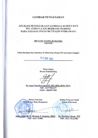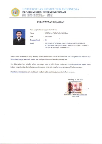Ramanda, Bintang Fatwa (2023) Aplikasi Pengelolaan Lembaga Kursus Dan Pelatihan (Lkp) Berbasis Website Pada Yayasan Insan Muttaqin Indramayu. Other thesis, Universitas Komputer Indonesia.