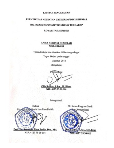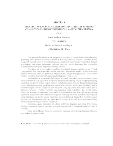 Gumelar, Anisa Andiani (2018) Efektivitas Kegiatan Gathering Divisi Humas Hijabers Community Bandung Terhadap Loyalitas Membernya. Other thesis, Universitas Komputer Indonesia.