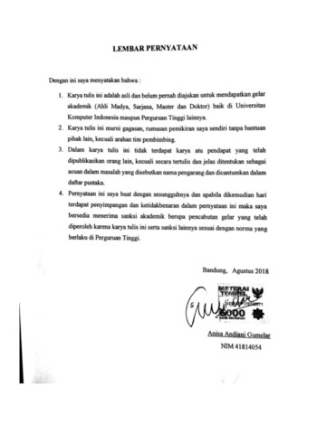 4. UNIKOM_41814054_ANISA ANDIANI GUMELAR_LEMBAR PERNYATAAN.pdf - Published Version