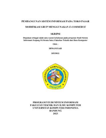 Irwansyah, Irwansyah (2023) Pembangunan Sistem Informasi Pada Toko Pasar Modifikasi Grup Menggunakan E-Commerce. Other thesis, Universitas Komputer Indonesia.