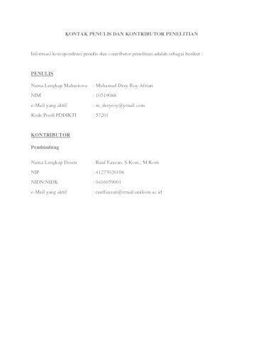 UNIKOM_MUHAMAD DERY ROY AFRIARI_KONTAK PENULIS DAN KONTRIBUTOR PENELITIAN.pdf - Published Version