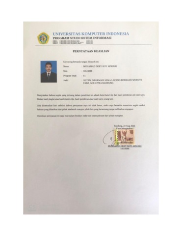 UNIKOM_MUHAMAD DERY ROY AFRIARI_SURAT PERNYATAAN KEASLIAN.pdf - Published Version