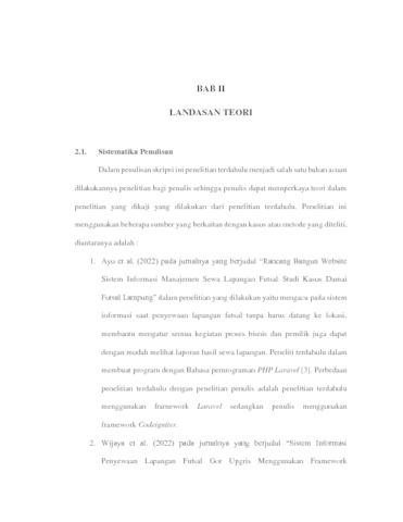 | Uncontrolled Keywords: | Sistem Informasi, Sewa Lapang, Website. |