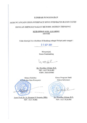 Alfariski, Muhammad Agil (2023) Perancangan User Interface Situs Web Band Blues Clues Dengan Menggunakan Metode Design Thinking. Other thesis, Universitas Komputer Indonesia.