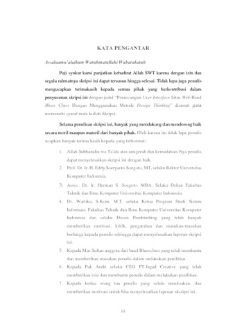 User interface merupakan salah satu aspek penting dalam perancangan awal suatu website yang menjadi penghubung antara web dengan pengguna. Website yang diciptakan harus mempunyai solusi atas permasalahan yang di alami pengguna, sehingga nantinya akan menciptakan pengalaman yang menyenangkan dan mudah dalam memberikan atau mendapatkan informasi kepada pengguna. Blues Clues Band merupakan band yang ada di Indonesia. Band ini berada di bawah tanggung jawab dari perusahaan Jagad kreatif, sebuah perusahaan yang salah satu produknya yaitu membuat sebuah sistem informasi-teknologi kreatif. Pada saat ini Bluesclues Band belum memiliki website resmi yang dapat digunakan sebagai media informasi dan pemasaran merchandise mereka, Hal ini menyebabkan kurangnya informasi yang didapatkan mengenai band tersebut. Sehingga penelitian ini bertujuan untuk menghasilkan rancangan User Interface situs web band yang nantinya mengacu pada hasil wawancara pengguna. Adapun metode yang digunakan dalam penelitian ini yaitu metode Design Thingking dengan 5 tahapan yaitu : Emphatize, Define, Ideate, Prototype, dan terakhir Testing, Aspek pengujian yang digunakan pada pengujian rancangan aplikasi ini yaitu effectiveness, efficiency, dan satisfaction dengan menggunakan metode pengujian usability testing dengan system usability scale. Berdasarkan hasil dari pengujian kepada pihak Bluesclues dan PT. Jagad kreatif untuk aspek effectiveness didapatkan nilai sebesar 96%. Untuk aspek efficiency didapatkan nilai time based efficiency (TBE) sebesar 0,07 sec/goals. Untuk aspek satisfaction didapatkan nilai sebesar 83 yang mana termasuk ke dalam kategori grade B dan Acceptable. Dari hasil pengujian dapat disimpulkan bahwa perancangan web dengan menggunakan metode Design thinking dapat meningkatkan pengalaman pengguna saat menggunakan website.