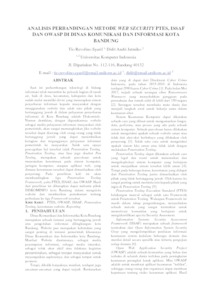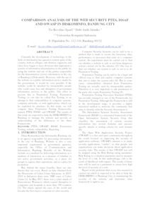 Saat ini perkembangan teknologi di bidang informasi telah merambat ke pelosok bagian di tanah air, baik di desa, kecamatan, kabupaten dan kota sudah mulai memiliki divisi yang menerapkan sistem penyebaran informasi kepada masyarakat dengan menggunakan Website dan salah satu pihak yang bertanggung jawab di dalam pelayanan penyebaran informasi di Kota Bandung adalah Diskominfo. Namun demikian, dengan digunakannya Website sebagai media pelayanan informasi masyarakat oleh pemerintah, akan sangat memungkinkan jika Website tersebut dapat diserang oleh orang-orang yang tidak bertanggung jawab yang dapat menimbulkan kerugian dan terganggunya pelayanan informasi pemerintah ke masyarakat. Salah satu upaya pencegahan hal tersebut ialah Penetration Testing. Penetration Testing, atau bisa juga disebut Pen Testing, merupakan sebuah percobaan untuk menemukan kerentanan pada sistem komputer, jaringan komputer, ataupun aplikasi web, yang dimana kerentanan tersebut dapat dimanfaatkan oleh penyerang. Pada penelitian kali ini akan membandingkan tiga Penetration Testing Framework , yaitu PTES, ISSAF, dan OWASP. Hasil dari penelitian ini diharapkan dapat mebantu pihak DISKOMINFO kota Bandung dalam mengelola Website dan memberikan pemahaman tentang perbedaan ke tiga Framework tersebut.