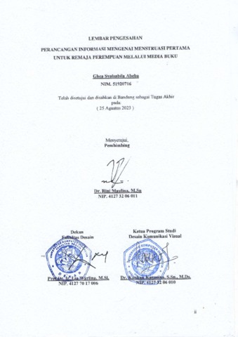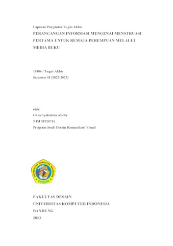 Abeba, Ghea Syalsabila (2023) Perancangan Informasi Mengenai Menstruasi Pertama Untuk Remaja Perempuan Melalui Media Buku. Other thesis, Universitas Komputer Indonesia.