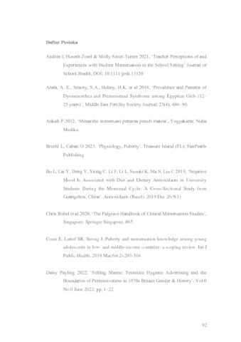 | Uncontrolled Keywords: | Menstruasi, Desain Komunikasi Visual, Remaja, Buku, Kesehatan, Perempuan, Psikologi. |