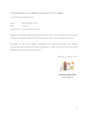 UNIKOM_Ghea Syalsabila Abeba_Lembar Pernyataan Orisinalitas.pdf - Published Version